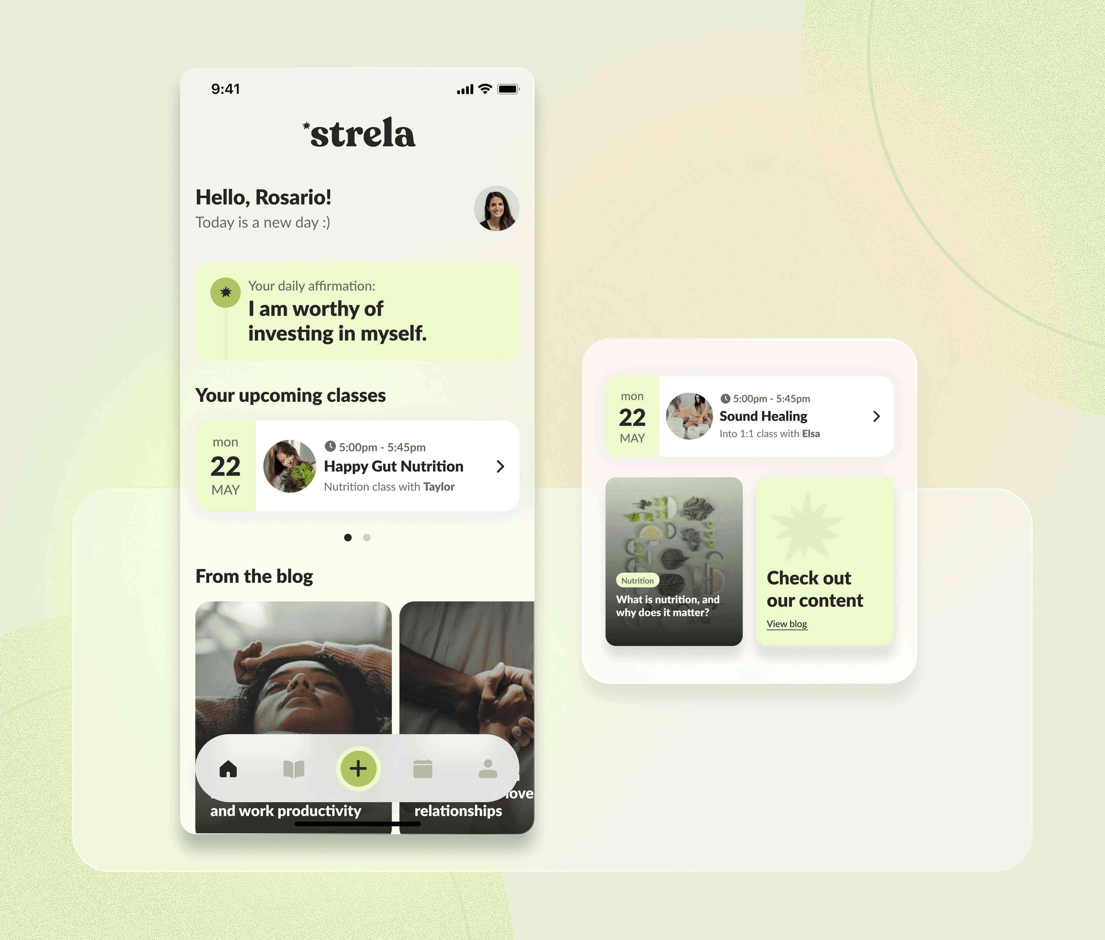 Because a core part of Strela’s mission is wellness for everyone, I made sure the design emphasized clarity, readability, and friendly interactions—nothing overly ornate or exclusive.